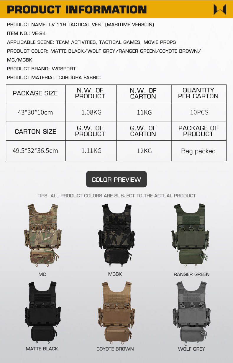 Product Name:LV-119 Tactical Vest (Maritime Version)